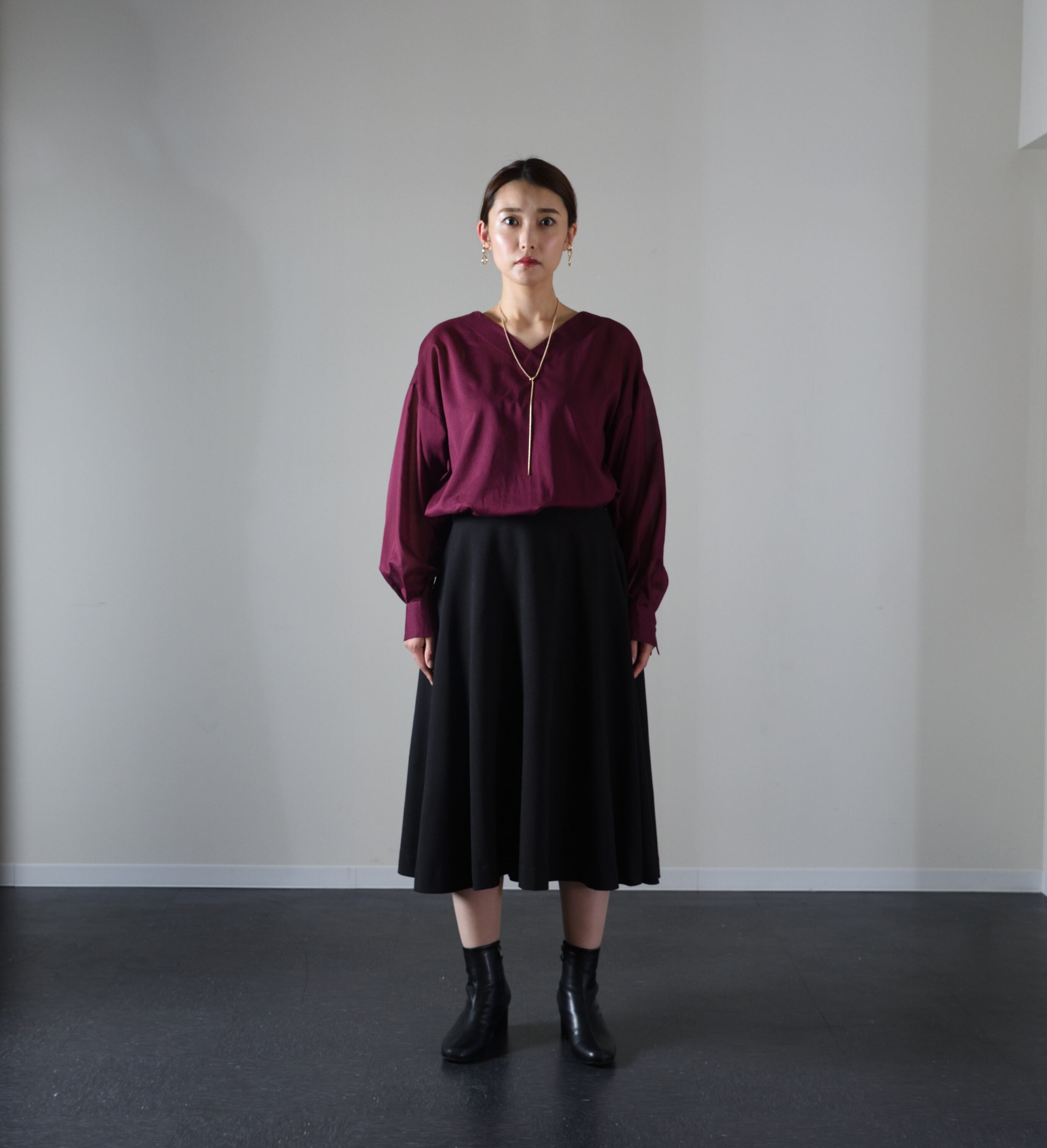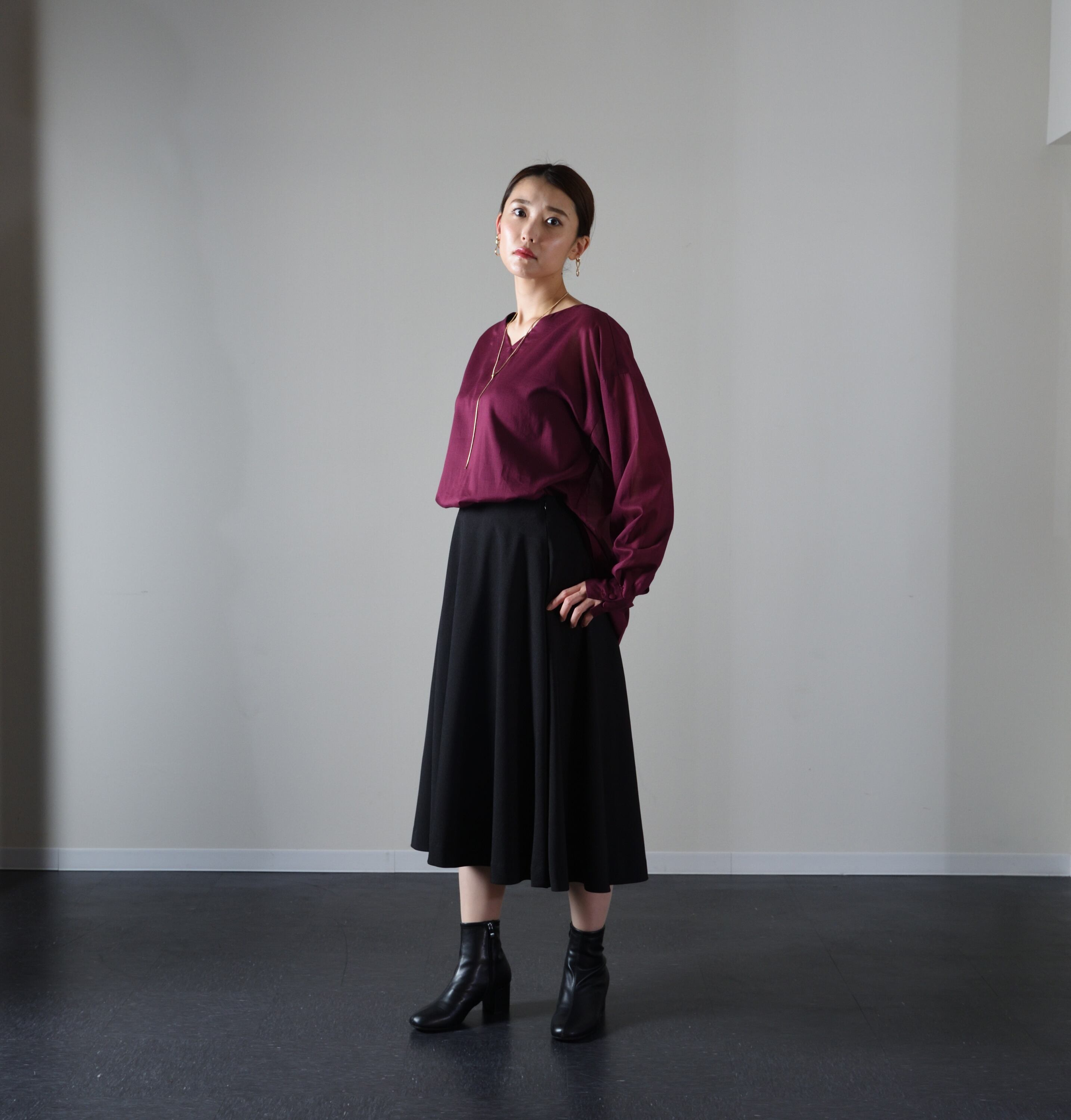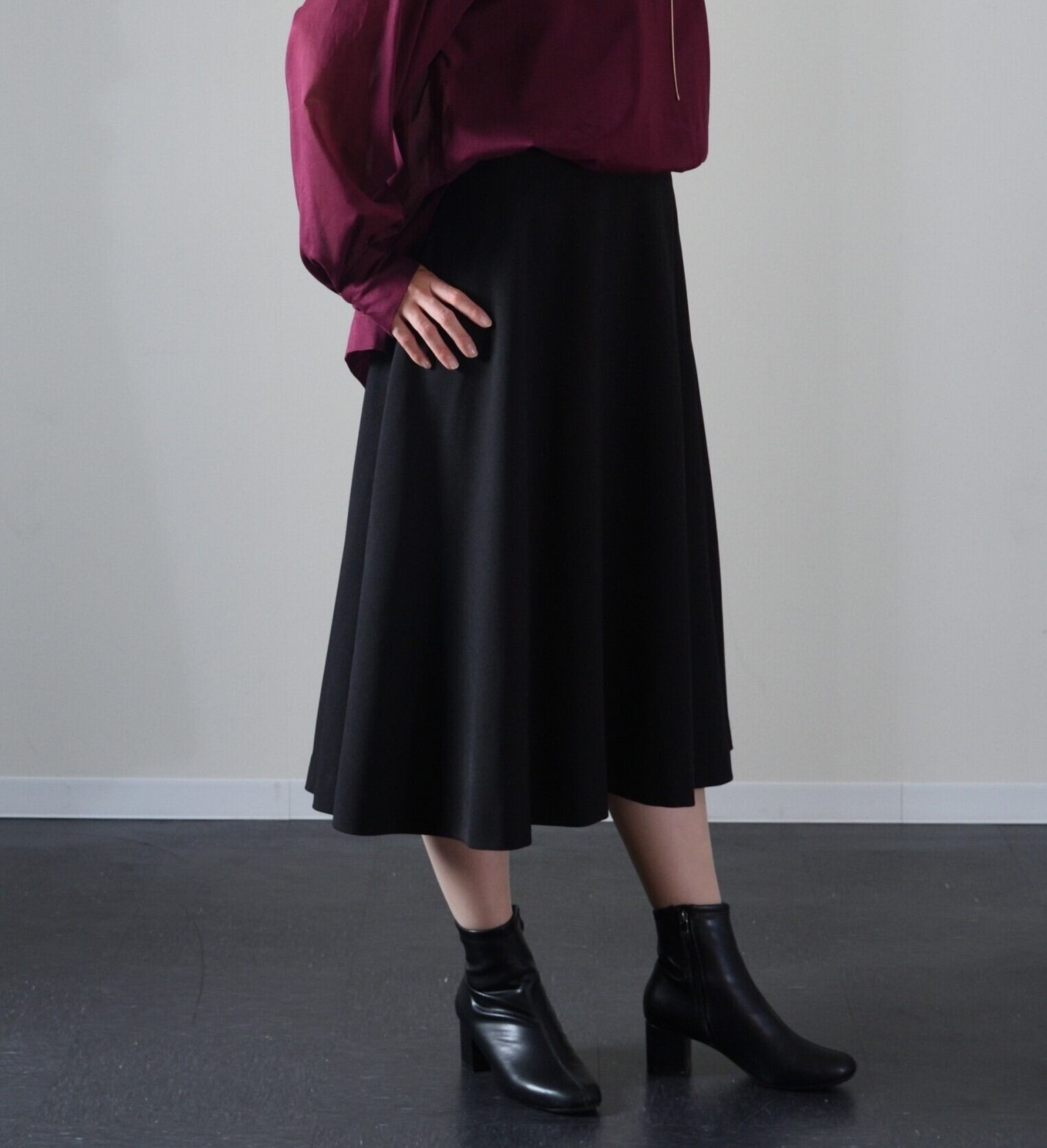 ミディ丈で足首を美しく見せることができます。